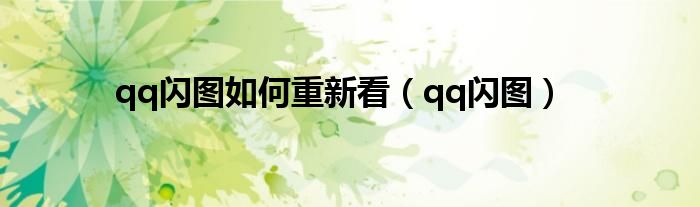 大家好,小晋来为大家解答以下问题,关于qq闪图如何重新看,qq闪图很多人还不知道,今天让我们一起来看看吧!