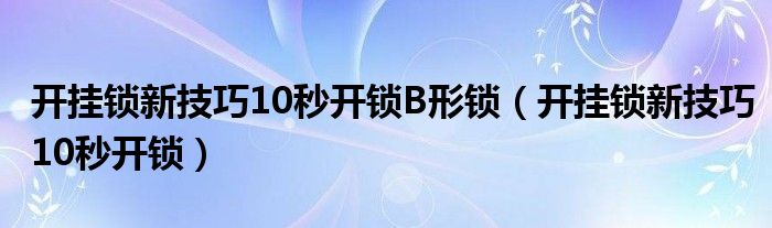 大家好,小晋来为大家解答以下问题,关于开挂锁新技巧10秒开锁B形锁,开挂锁新技巧10秒开锁很多人还不知道,今天让我们一起来看看吧!
