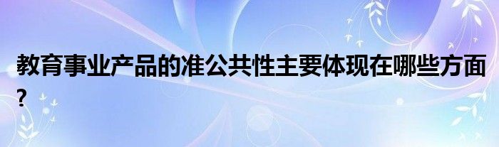关于教育事业产品的准公共性主要体现在哪些方面?这个很多人还不知道,今天菲菲来为大家解答以上的问题,现在让我们一起来看看吧!