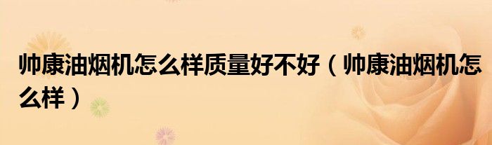 1、油烟机是我们家庭生活中不可或缺的家用电器,油烟机的使用方法特别简单,为我们的生活提供了很多好处和便利。市面上的油烟机品牌很多,帅康油烟机怎么样!接下来,边肖将介绍几款不同的帅康油烟机的性能和价格。希望大家能对帅康油烟机做一些客观的评价。