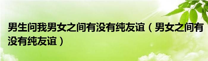 关于男生问我男女之间有没有纯友谊,男女之间有没有纯友谊这个很多人还不知道,今天菲菲来为大家解答以上的问题,现在让我们一起来看看吧!
