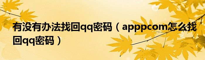 大家好,小晋来为大家解答以下问题,关于有没有办法找回qq密码,apppcom怎么找回qq密码很多人还不知道,今天让我们一起来看看吧!