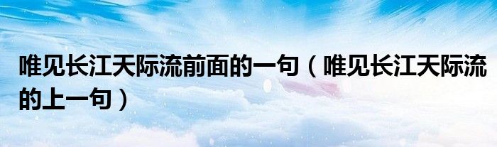 大家好,小晋来为大家解答以下问题,关于唯见长江天际流前面的一句,唯见长江天际流的上一句很多人还不知道,今天让我们一起来看看吧!