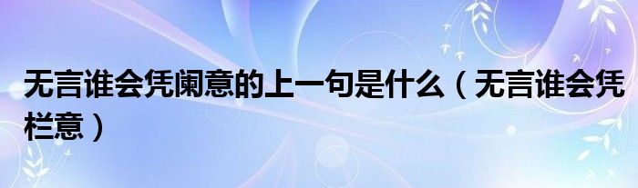 无言谁会凭阑意的上一句是什么(无言谁会凭栏意)