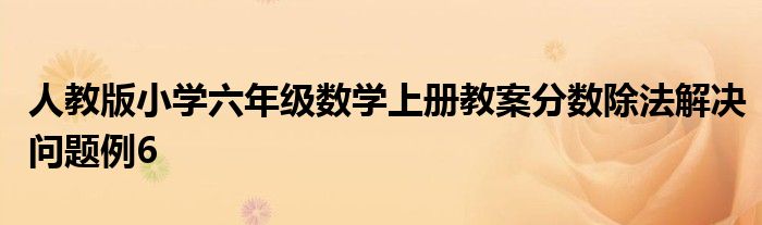关于人教版小学六年级数学上册教案分数除法解决问题例6这个很多人还不知道,今天菲菲来为大家解答以上的问题,现在让我们一起来看看吧!