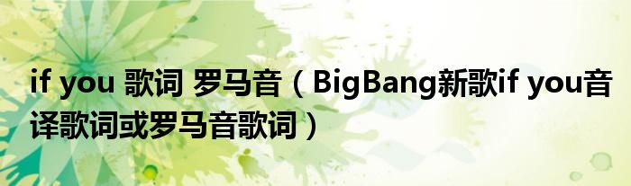 关于if you 歌词 罗马音,BigBang新歌if you音译歌词或罗马音歌词这个很多人还不知道,今天菲菲来为大家解答以上的问题,现在让我们一起来看看吧!