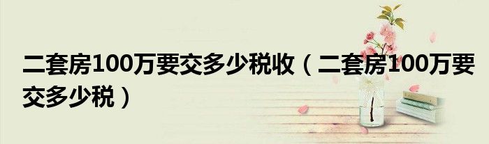 大家好,小晋来为大家解答以下问题,关于二套房100万要交多少税收,二套房100万要交多少税很多人还不知道,今天让我们一起来看看吧!
