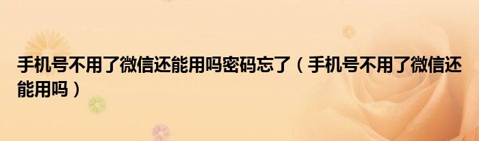 手机号不用了微信还能用吗密码忘了(手机号不用了微信还能用吗)