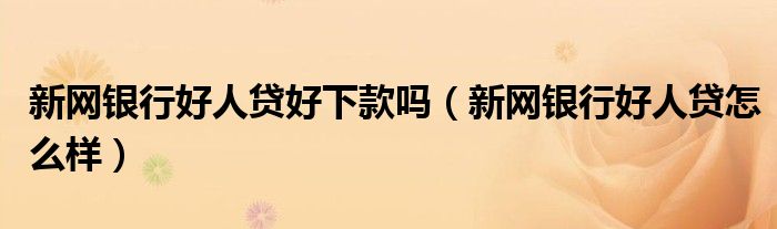 新网银行好人贷好下款吗(新网银行好人贷怎么样)