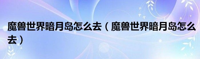 魔兽世界暗月岛怎么去,魔兽世界暗月岛怎么去很多人还不知道,乐乐来为大家解答以上问题,现在让我们一起来看看吧!