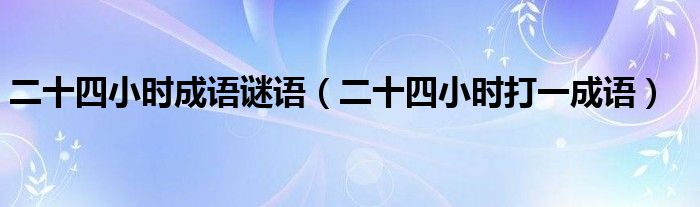 大家好,小晋来为大家解答以下问题,关于二十四小时成语谜语,二十四小时打一成语很多人还不知道,今天让我们一起来看看吧!