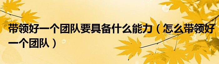 关于带领好一个团队要具备什么能力,怎么带领好一个团队这个很多人还不知道,今天菲菲来为大家解答以上的问题,现在让我们一起来看看吧!