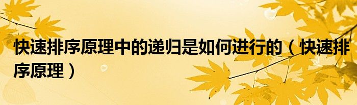 关于快速排序原理中的递归是如何进行的,快速排序原理这个很多人还不知道,今天菲菲来为大家解答以上的问题,现在让我们一起来看看吧!