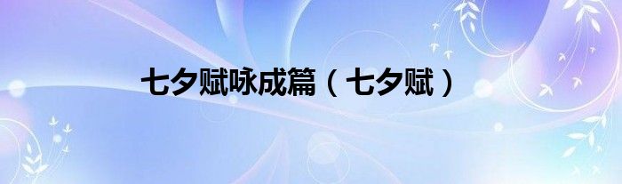 关于七夕赋咏成篇,七夕赋这个很多人还不知道,今天菲菲来为大家解答以上的问题,现在让我们一起来看看吧!