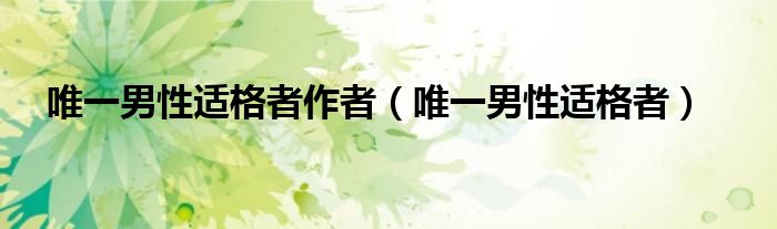 关于唯一男性适格者作者,唯一男性适格者这个很多人还不知道,今天菲菲来为大家解答以上的问题,现在让我们一起来看看吧!