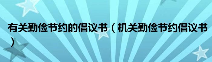 关于有关勤俭节约的倡议书,机关勤俭节约倡议书这个很多人还不知道,今天菲菲来为大家解答以上的问题,现在让我们一起来看看吧!