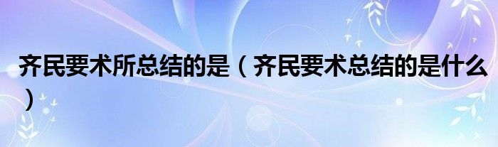 关于齐民要术所总结的是,齐民要术总结的是什么这个很多人还不知道,今天菲菲来为大家解答以上的问题,现在让我们一起来看看吧!
