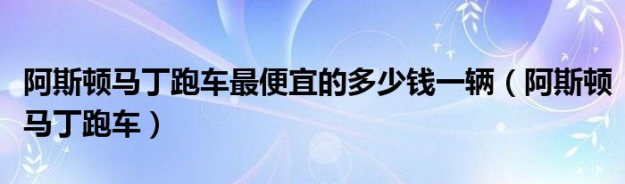 关于阿斯顿马丁跑车最便宜的多少钱一辆,阿斯顿马丁跑车这个很多人还不知道,今天菲菲来为大家解答以上的问题,现在让我们一起来看看吧!