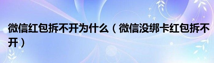 微信红包拆不开为什么(微信没绑卡红包拆不开)