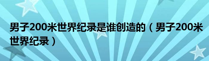男子200米世界纪录是谁创造的(男子200米世界纪录)