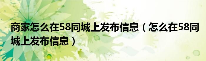 大家好,小晋来为大家解答以下问题,关于商家怎么在58同城上发布信息,怎么在58同城上发布信息很多人还不知道,今天让我们一起来看看吧!