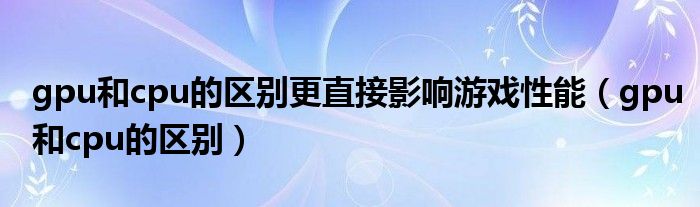 关于gpu和cpu的区别更直接影响游戏性能,gpu和cpu的区别这个很多人还不知道,今天菲菲来为大家解答以上的问题,现在让我们一起来看看吧!