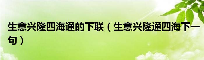 大家好,小晋来为大家解答以下问题,关于生意兴隆四海通的下联,生意兴隆通四海下一句很多人还不知道,今天让我们一起来看看吧!