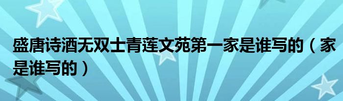 大家好,小晋来为大家解答以下问题,关于盛唐诗酒无双士青莲文苑第一家是谁写的,家是谁写的很多人还不知道,今天让我们一起来看看吧!