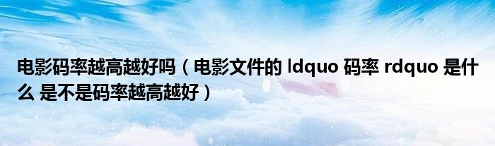 关于电影码率越高越好吗,电影文件的 ldquo 码率 rdquo 是什么 是不是码率越高越好这个很多人还不知道,今天菲菲来为大家解答以上的问题,现在让我们一起来看看吧!