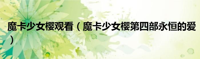 关于魔卡少女樱观看,魔卡少女樱第四部永恒的爱这个很多人还不知道,今天菲菲来为大家解答以上的问题,现在让我们一起来看看吧!