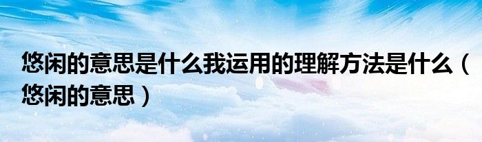 关于悠闲的意思是什么我运用的理解方法是什么,悠闲的意思这个很多人还不知道,今天菲菲来为大家解答以上的问题,现在让我们一起来看看吧!