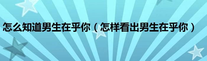 关于怎么知道男生在乎你,怎样看出男生在乎你这个很多人还不知道,今天菲菲来为大家解答以上的问题,现在让我们一起来看看吧!