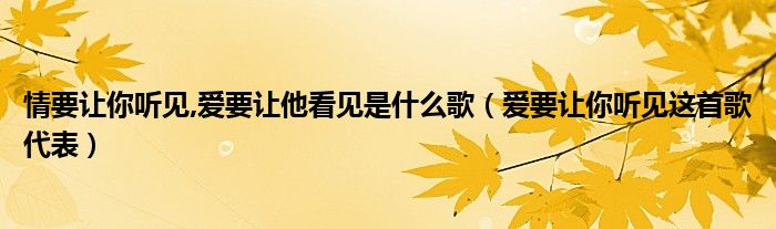 关于情要让你听见,爱要让他看见是什么歌,爱要让你听见这首歌代表这个很多人还不知道,今天菲菲来为大家解答以上的问题,现在让我们一起来看看吧!