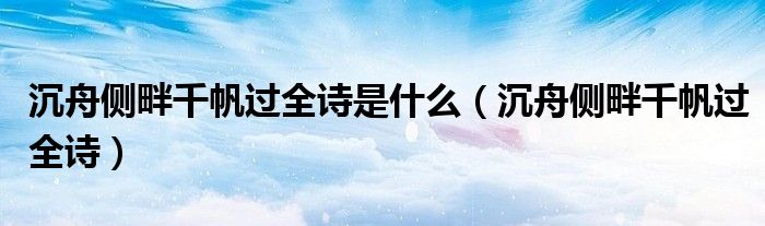 关于沉舟侧畔千帆过全诗是什么,沉舟侧畔千帆过全诗这个很多人还不知道,今天菲菲来为大家解答以上的问题,现在让我们一起来看看吧!