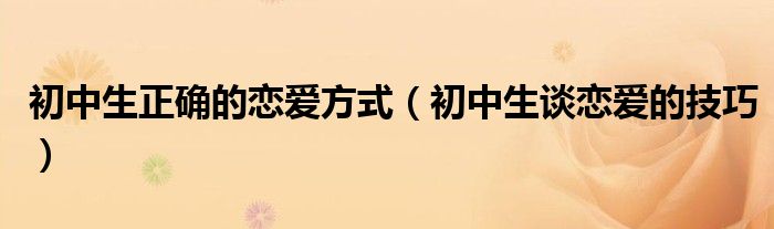 关于初中生正确的恋爱方式,初中生谈恋爱的技巧这个很多人还不知道,今天菲菲来为大家解答以上的问题,现在让我们一起来看看吧!