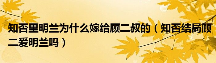 大家好,小晋来为大家解答以下问题,关于知否里明兰为什么嫁给顾二叔的,知否结局顾二爱明兰吗很多人还不知道,今天让我们一起来看看吧!