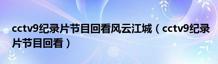 关于cctv9纪录片节目回看风云江城,cctv9纪录片节目回看这个很多人还不知道,今天菲菲来为大家解答以上的问题,现在让我们一起来看看吧!